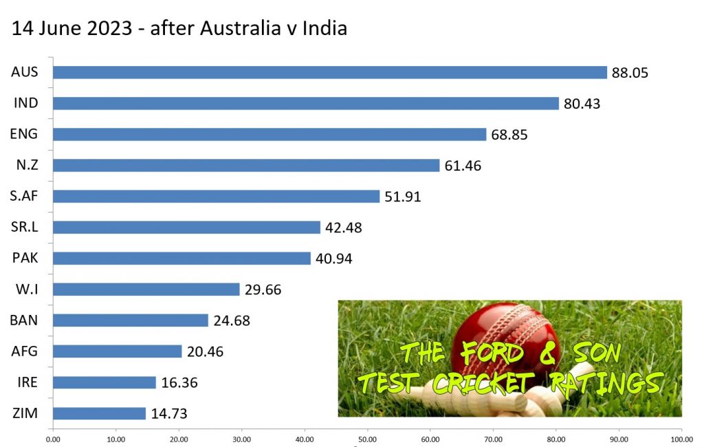 Up-to-date and fast to reflect the current levels of each team, this is the home of the popular Ford and Son Test Cricket Rating Tables.